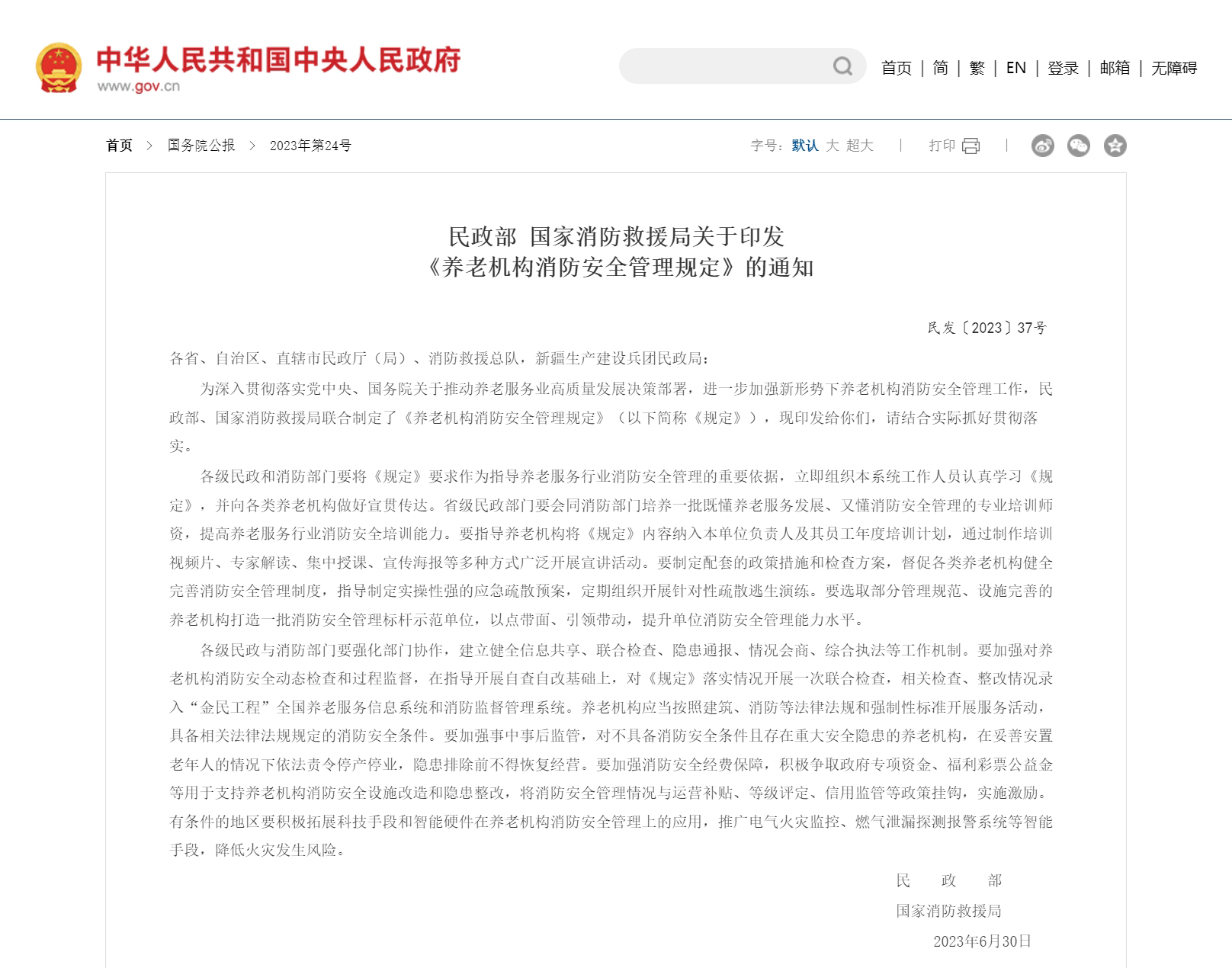 依據(jù)國務院《消防安全責任制實施辦法》,民政局肩負著對養(yǎng)老機構(gòu)消防安全的行業(yè)監(jiān)管重任,從審批備案、日常檢查到隱患整改,整個流程都在其監(jiān)管范疇內(nèi)。2023 年,民政部與國家消防救援局聯(lián)合印發(fā)的《養(yǎng)老機構(gòu)消防安全管理規(guī)定》進一步明確,民政部門要在養(yǎng)老機構(gòu)審批或管理中負責行業(yè)消防安全。