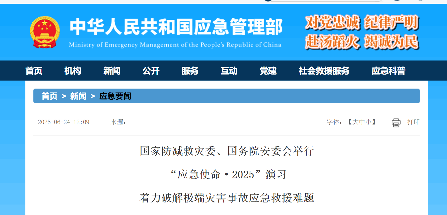 2025年6月24日,“應(yīng)急使命?2025”極端災(zāi)害救援演習(xí)在多地開(kāi)展。演習(xí)聚焦實(shí)戰(zhàn),設(shè)置4個(gè)專題23個(gè)科目,投入2000余應(yīng)急力量,檢驗(yàn)極端災(zāi)害救援能力。其中,森林、儲(chǔ)罐、高層建筑等火災(zāi)場(chǎng)景演練,明確了智慧消防技術(shù)應(yīng)用需求。