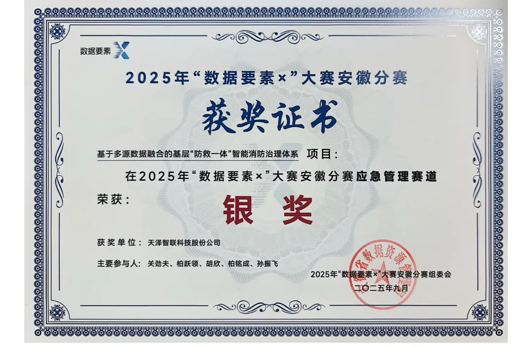 - 祝賀!天澤智聯(lián)榮獲2025年“數(shù)據(jù)要素×”大賽安徽分賽銀獎(jiǎng)!
