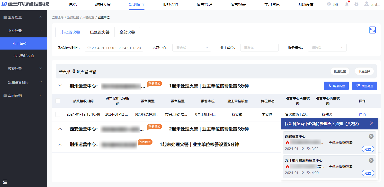 對接入云平臺的業(yè)主單位,天澤智聯(lián)監(jiān)測值守人員執(zhí)行“1警1電”告警服務(wù),即云平臺在監(jiān)測到報(bào)警時,第一時間致電業(yè)主單位消防控制室值班或巡查人員告知報(bào)警點(diǎn)位,督促前往報(bào)警點(diǎn)進(jìn)行報(bào)警復(fù)核(時限默認(rèn)5分鐘)。