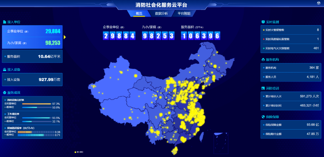天澤智聯(lián)通過創(chuàng)新消防科技與保險服務機制,為業(yè)主單位提供消防風險保險兜底,保障消防設施損壞和火災事故損失;消防社會化服務云平臺展示相關數(shù)據(jù),支持消防設備快速理賠,助力建筑消防設施完好性。