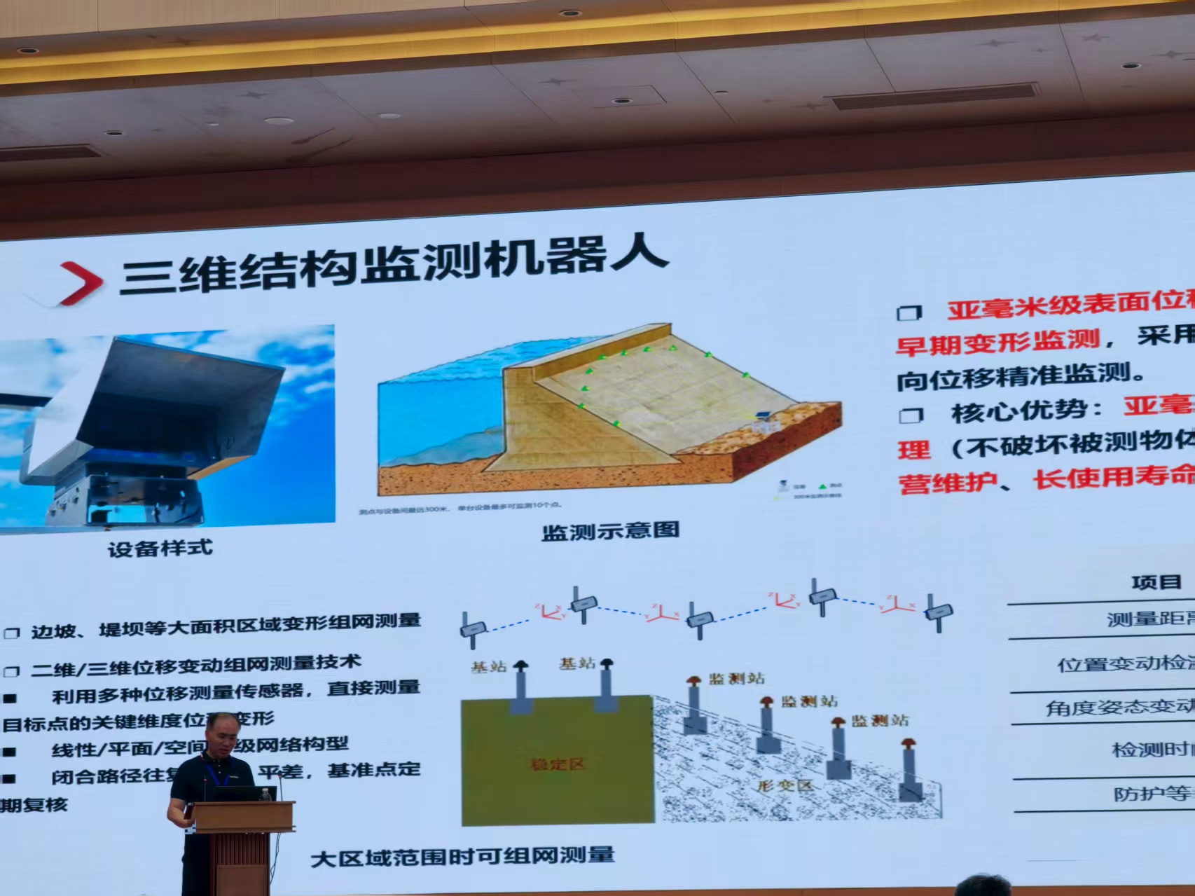 該體系整合衛(wèi)星遙感、無人機巡檢、地面監(jiān)測設備、水下探測裝置及工程結(jié)構(gòu)監(jiān)測儀器,構(gòu)建起全方位、多維度的水利監(jiān)測網(wǎng)絡。其中,三維結(jié)構(gòu)監(jiān)測機器人憑借0.2-1mm的位移檢測精度,可對泵站、壩體等結(jié)構(gòu)進行高精度變形監(jiān)測,適應復雜工況;彈性波檢測技術如同“隱患CT”,能穿透深部結(jié)構(gòu),精準定位壩體內(nèi)部空洞、滲漏通道等隱患,且無需破壞工程結(jié)構(gòu);陣列式聲發(fā)射監(jiān)測技術則通過捕捉巖土應變產(chǎn)生的微震信號,實現(xiàn)毫米級變形的早期預警,將預警時效從“天級”提升至“小時級”。