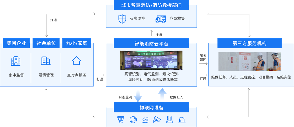 天澤智聯(lián)智慧消防云平臺(tái)整合多源數(shù)據(jù),構(gòu)建“人-物-環(huán)境”三維數(shù)字孿生體。平臺(tái)三大核心功能:實(shí)時(shí)監(jiān)測(cè),利用防災(zāi)智盒等設(shè)備24小時(shí)采集參數(shù),異常數(shù)據(jù)云端同步;智能研判,借大數(shù)據(jù)生成設(shè)備健康報(bào)告;應(yīng)急聯(lián)動(dòng),報(bào)警后自動(dòng)斷電、啟動(dòng)通風(fēng),向消防推送三維地圖輔助救援。
