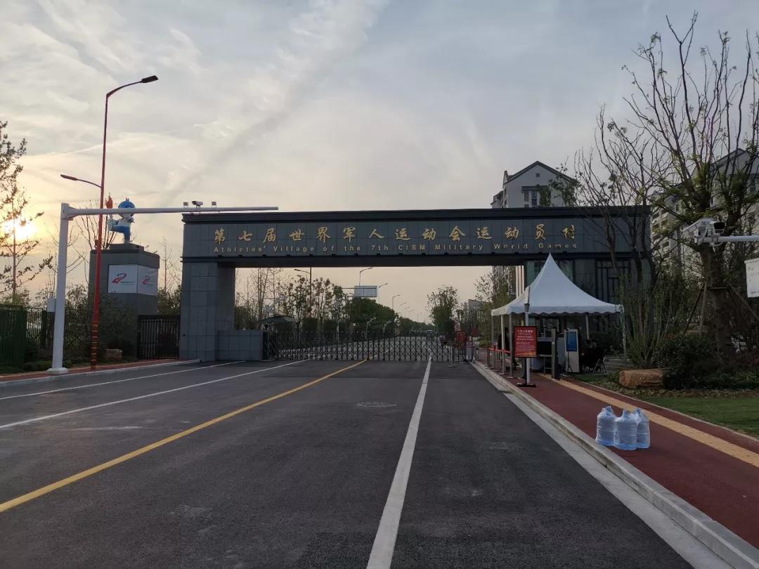 黑夜慢慢褪去,泛白的月亮悠悠掛在半空,路燈還未熄滅,發(fā)出暗淡的光。這里是第七屆世界軍人運動會運動員村,位于武漢市江夏區(qū)黃家湖東南岸,是軍運會歷史上第一個集中新建、參賽代表團集中食宿的軍運村。