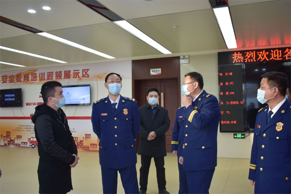 山東省消防救援總隊(duì)總隊(duì)長(zhǎng)李建春一行蒞臨蘭山商城智慧消防安全服務(wù)中心視察消防安全工作