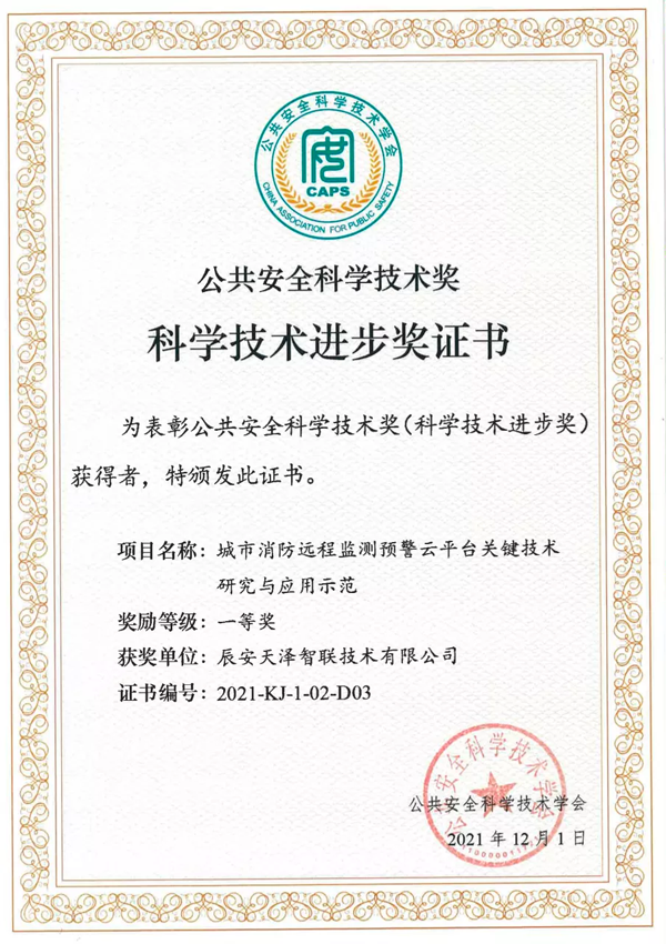 重磅喜訊|辰安天澤“城市消防遠(yuǎn)程監(jiān)測(cè)預(yù)警云平臺(tái)關(guān)鍵技術(shù)”斬獲一等獎(jiǎng)!