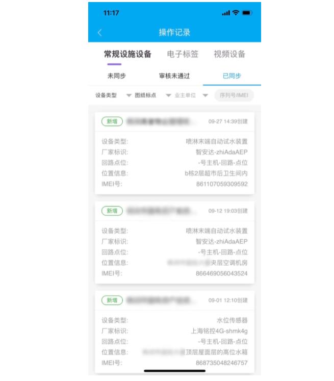 可通過APP端一鍵掃描二維碼、手動輸入等方式完整記錄消防、物聯(lián)網等設施設備的基礎數(shù)據(jù),包含設備名稱、設備ID、型號、類型等,以及設備點位、運行狀態(tài)等現(xiàn)場情況,形成標準、完備的電子檔案。