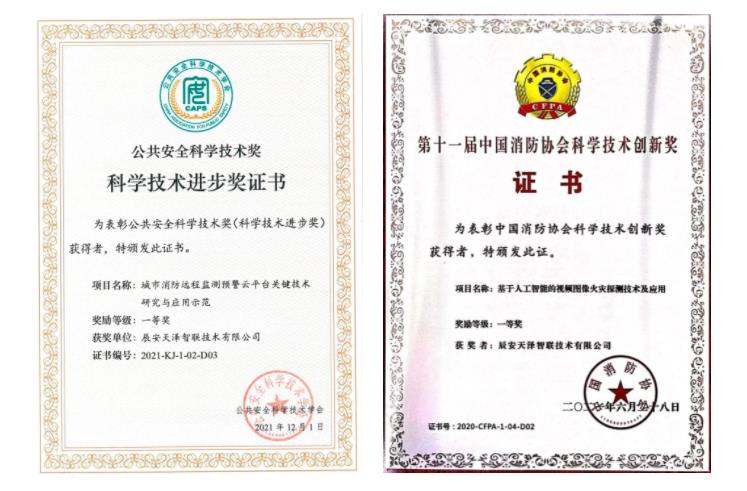 基于自身強大的科研實力和技術(shù)創(chuàng)新能力,實驗平臺得到權(quán)威認(rèn)可,斬獲多項榮譽?!俺鞘邢肋h(yuǎn)程監(jiān)測預(yù)警云平臺關(guān)鍵技術(shù)”獲公共安全科學(xué)技術(shù)學(xué)會“科學(xué)技術(shù)進步獎一等獎”;“基于人工智能的視頻圖像火災(zāi)探測技術(shù)及應(yīng)用”獲中國消防協(xié)會科學(xué)技術(shù)創(chuàng)新獎一等獎……
